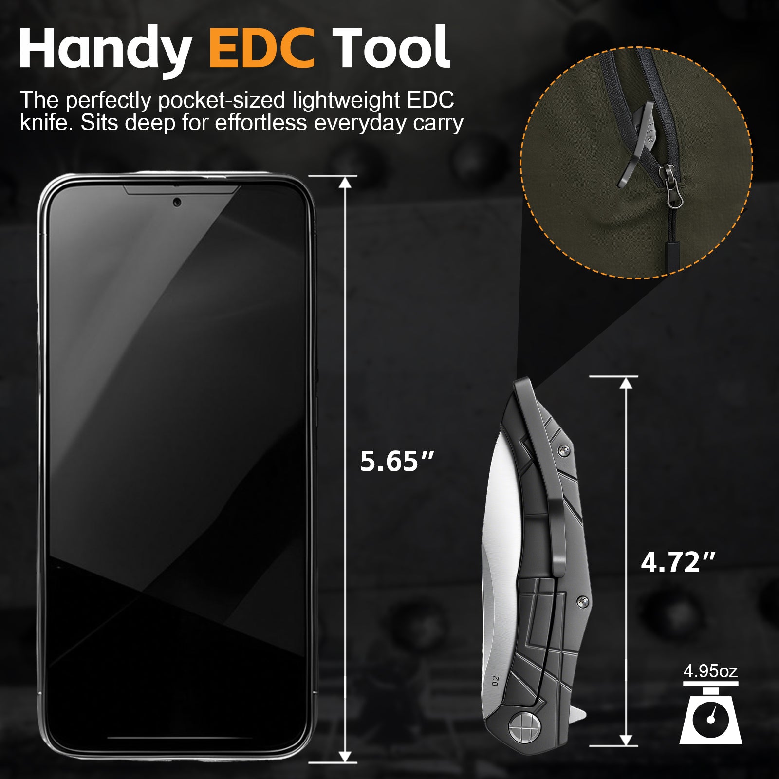 Pocket EDC Knife,3.8" D2 Steel V907