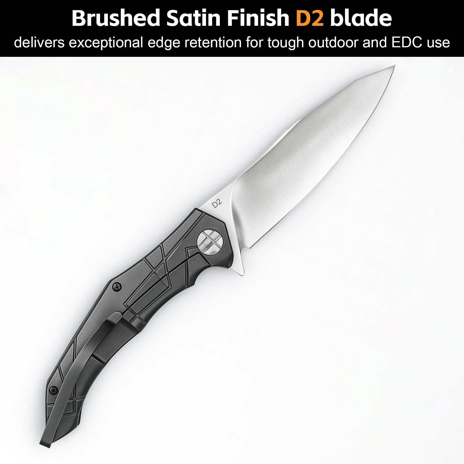 - D2 BLADE: Forged from wear-resistant D2 steel with a satin stonewash finish – delivering exceptional edge retention for demanding tasks, ideal for tough outdoor and EDC use.